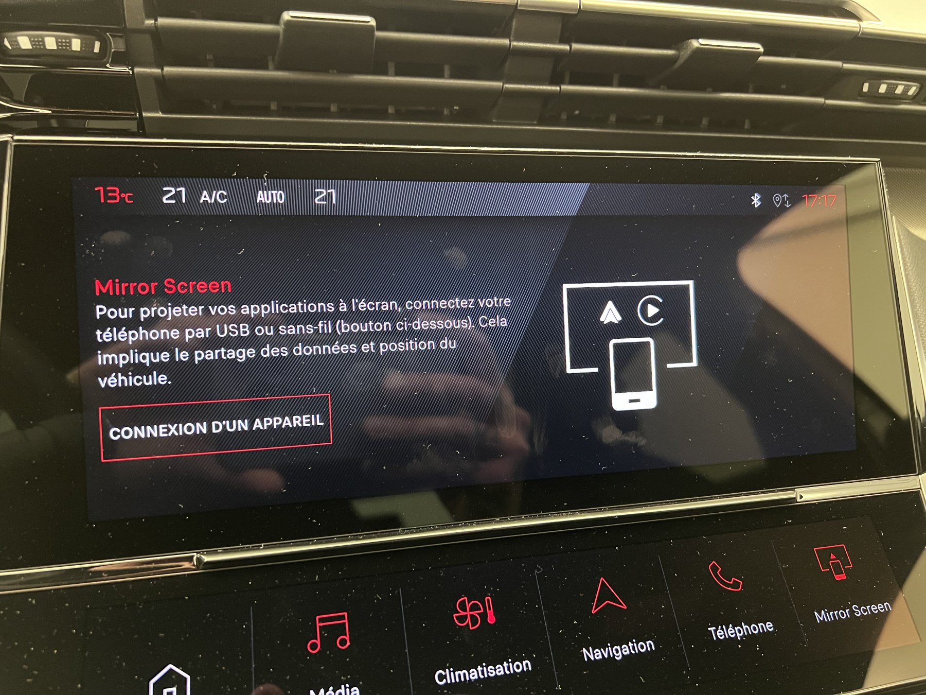 • Fonction Mirror Screen (Apple CarPlay/Android Auto) sans fil
