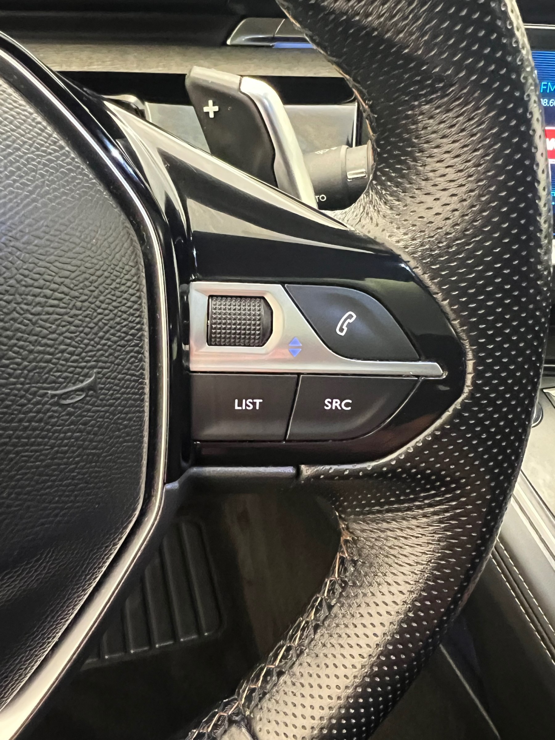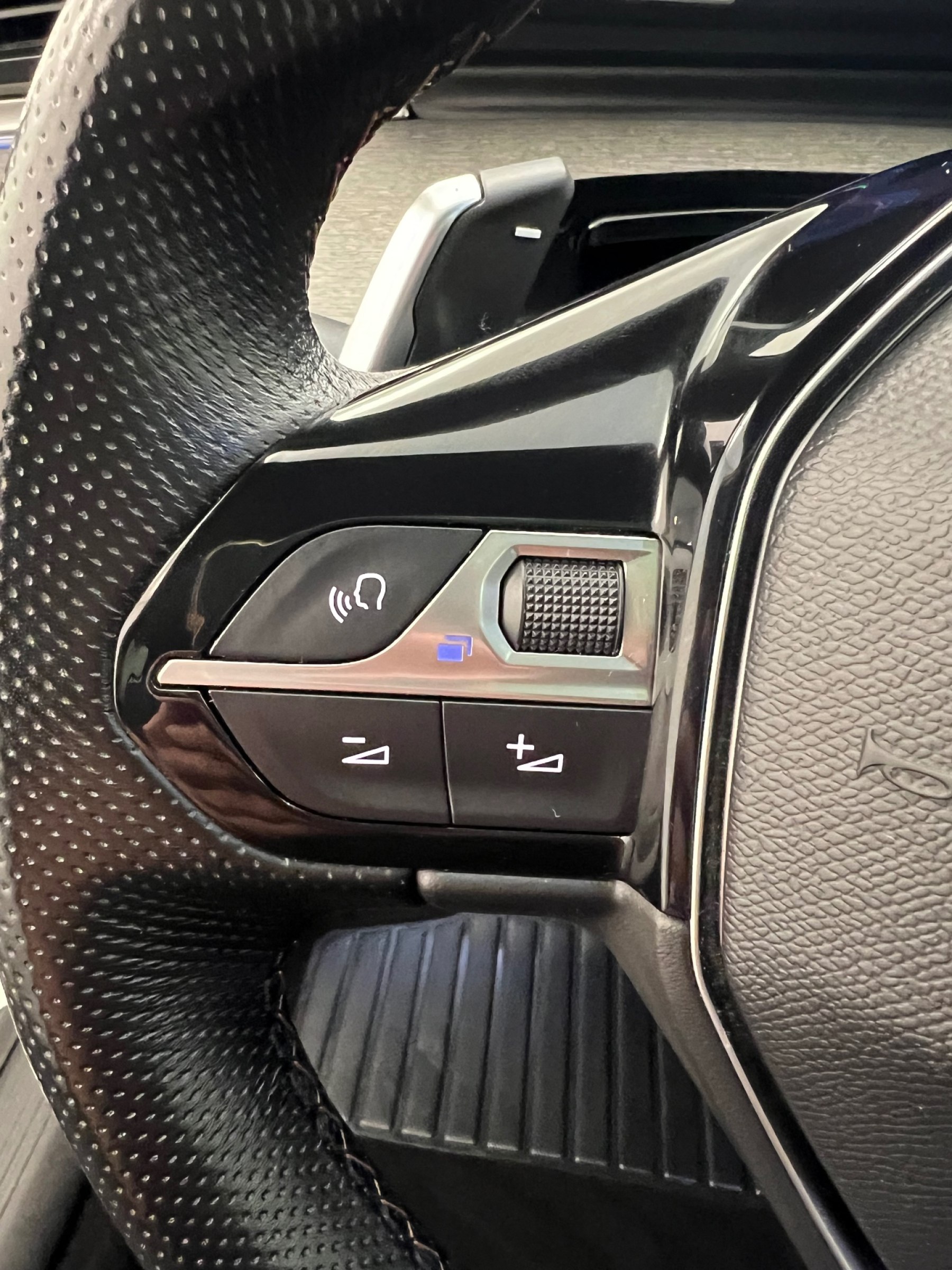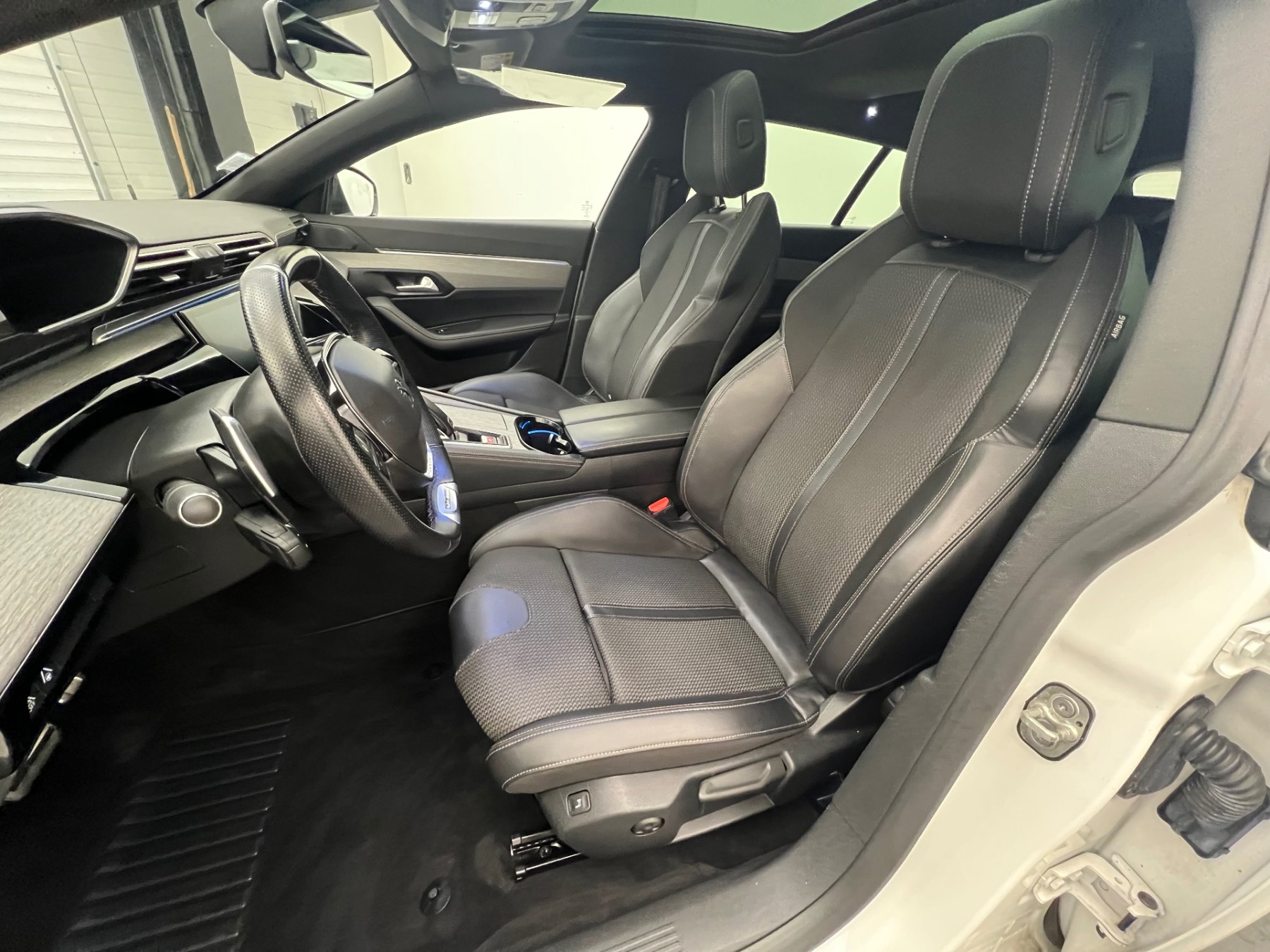 • Volant cuir fleur perfore avec bagues chromees et badge GT Line